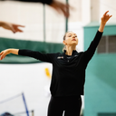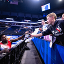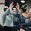 3"w x 3"h circular sticker with the official logo of the U.S. Gymnastics Mascot.